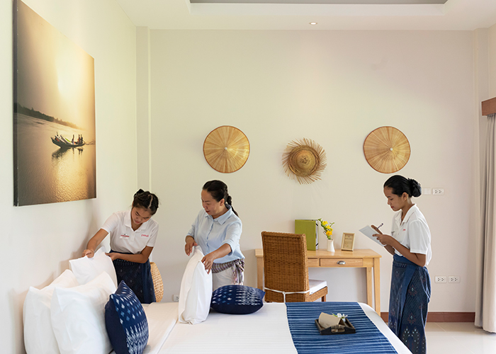 Noey, 18, grew up in modest circumstances in Nong Khai province. After finishing school, she saw few opportunities – until she discovered the Pimali Association. There, she began her training in housekeeping, learning everything about room care, laundry management, and the proper use of cleaning products.